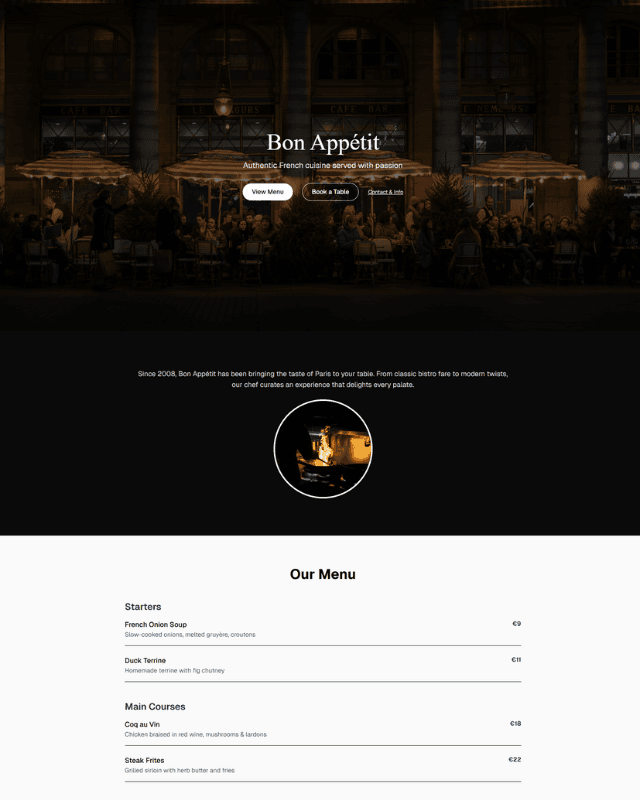 Free modern restaurant website template built with Next.js and Tailwind CSS. Perfect for showcasing a menu and attracting local food lovers.